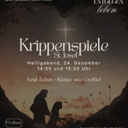 Liebe Kinder, liebe Erwachsene, auch in diesem Jahr möchte die Gemeinde St. Josef im Vosseberg ihre Krippenspiele an Heiligabend wieder um 14.30 Uhr und 15.30 Uhr in der Kirche aufführen. Dafür braucht sie begeisterte SpielerInnen und HelferInnen – groß und klein, jung und alt –, die Freude daran haben, Teil des Krippenspiels zu sein.