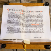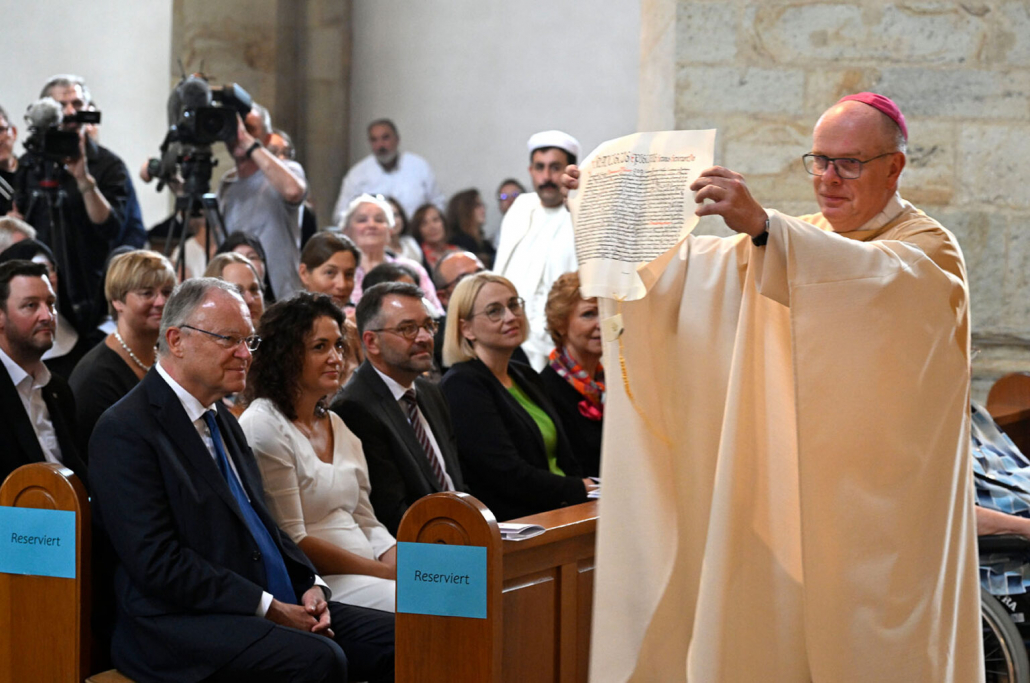 Nachdem der Apostolische Nuntius Erzbischof Nikola Eterovic die päpstliche Ernennungsurkunde im feierlichen Einführungsgottesdienst von Bischof Dominicus überreicht hatte, zeigte Weihbischof Johannes Wübbe sie allen Anwesenden und verlas die Übersetzung: