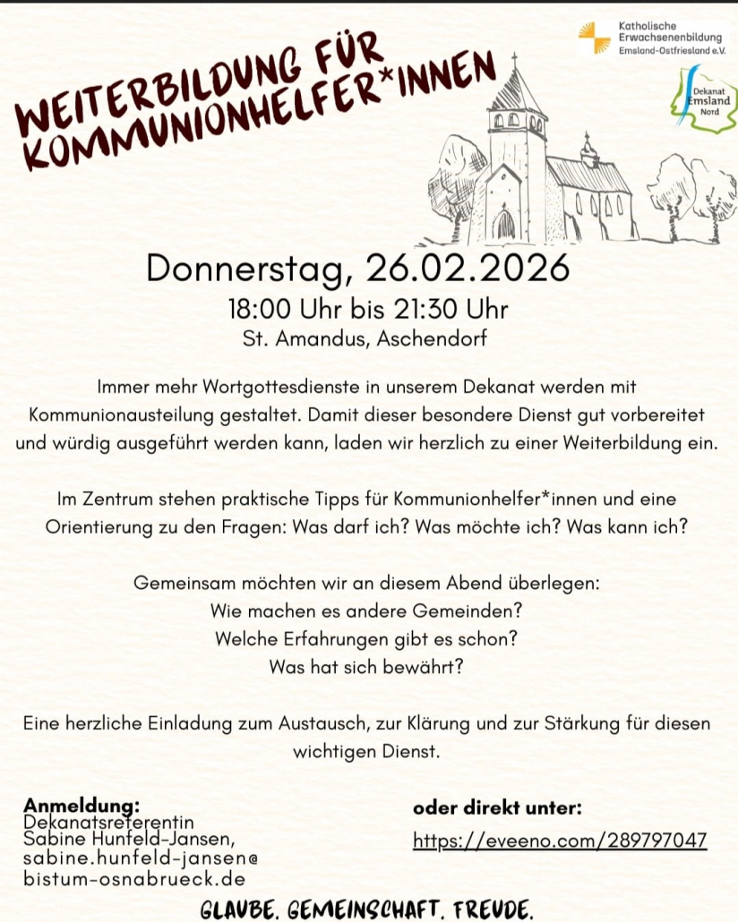 Das nächste Vorbereitungstreffen startet am Montag, 19. Januar 2026, um 18.00 Uhr im Niels-Stensen-Haus. Bei Infos gerne an Kirsten Griep-Raming wenden.