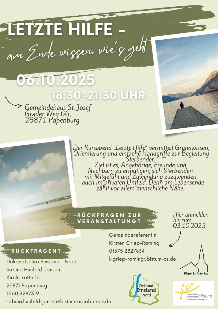 Anmeldung und Infos: Kirsten Griep-Raming, Tel. 01575 2827834