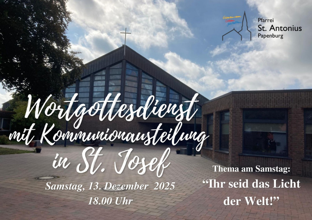 Herzliche Einladung zu dem Gottesdienst am 13.12., um 18.00 Uhr in St. Josef, der als „Lichtergottedienst“ gefeiert wird.
